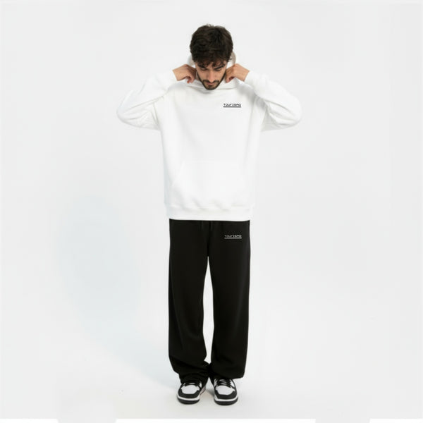 Finitions haut de gamme : molleton 450g intérieur brossé, poches kangourou dissimulées, coutures renforcées et impression pigmentaire HD. Aucun cordon : juste une ligne pure, sans distraction.