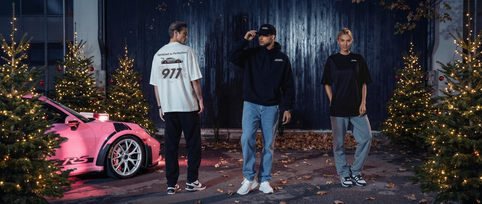 Linea affilata, anima da circuito. La quintessenza Porsche, versione tessile